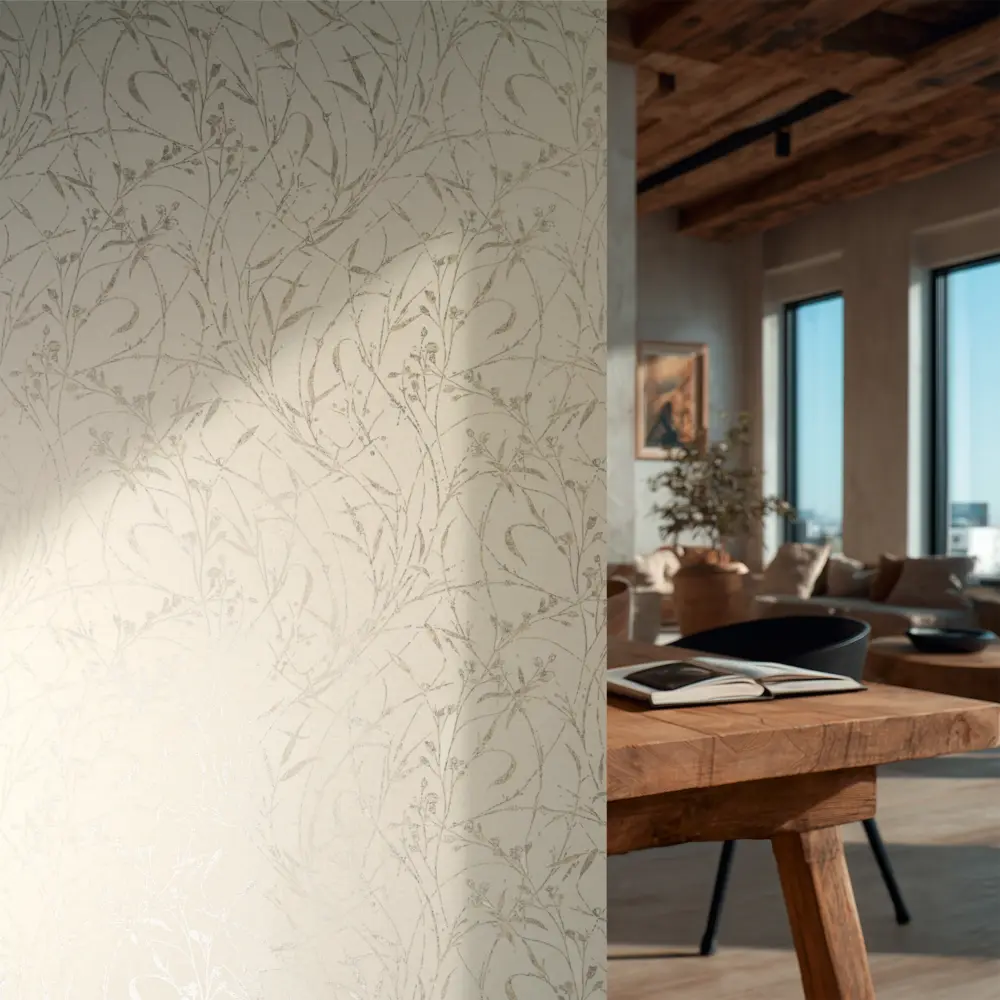 Die Tapete überzeugt mit einem edlen Wechselspiel aus matten und dezent glänzenden Partien sowie einer leicht strukturierten Haptik. So entsteht eine lebendige, zugleich zurückhaltende Wandgestaltung, die je nach Lichteinfall angenehm variiert. Die gute Lichtbeständigkeit unterstützt eine dauerhaft schöne Farbwirkung.