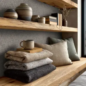 Die strukturierte, leicht glänzende Oberfläche in Grau mit metallischem Effekt eignet sich besonders für moderne Interieurs, stilvolle Akzentwände und Räume, in denen Licht gezielt wirken darf. Je nach Beleuchtung entsteht ein feines Spiel aus Struktur und Glanz, das Möbel, Textilien und Dekoration subtil hervorhebt.
