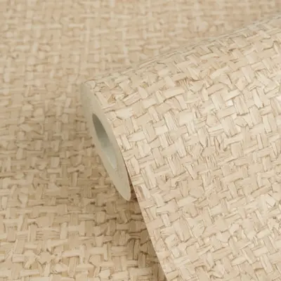 Die Tapete ist als Vliestapete mit Vinyl-Oberfläche aufgebaut. Das Vlies-Trägermaterial sorgt für Stabilität und ein sauberes Wandbild, während die leicht glänzende, strukturierte Oberfläche den Gewebe-/Rattan-Charakter dezent betont.