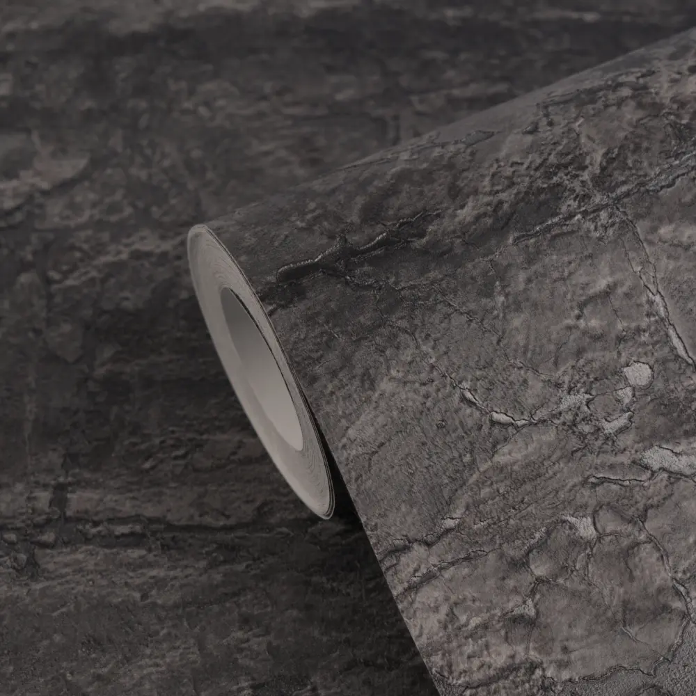 Die A.S. Création Vliestapete 791992 aus der Kollektion Vibes & Styles bringt eine ausdrucksstarke Steinoptik in Schwarz und Grau an Wand und Decke. Die leicht glänzende, strukturierte Oberfläche sorgt für Tiefe und eine moderne, zugleich wohnliche Wirkung.