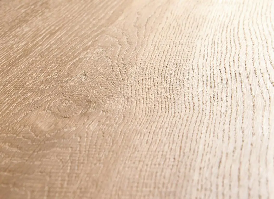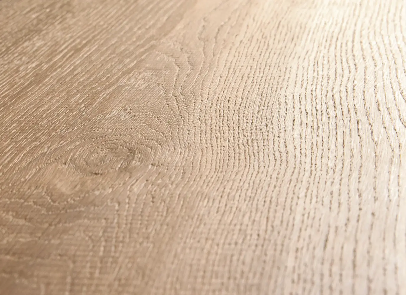 Die naturgeölte, leicht geräucherte Oberfläche bringt die charakteristische Maserung der Eiche voll zur Geltung und sorgt für ein natürliches, hell wirkendes Braun. Der Boden entspricht der Brandschutzklasse D fl – s1 (schwimmend wie verklebt). Die Verarbeitung "konter-handgehobelt, weiß naturgeölt" sorgt für das typische, hochwertige Erscheinungsbild eines Landhausdielen-Bodens.
