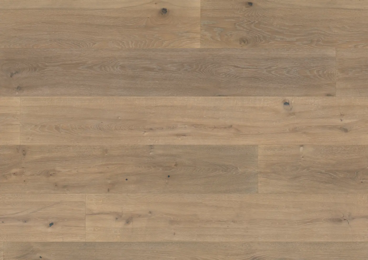 Das Fertigparkett Oak No.20 – Howard aus der Grand Houses Kollektion von Bennett & Jones setzt stilvolle Akzente in jedem Wohnraum. Das beeindruckende Breitdielenformat hebt die natürliche Schönheit der Eiche hervor und sorgt für ein harmonisch-helles Raumgefühl. Die lebhafte Sortierung und die gebürstete, handgehobelte Oberfläche verleihen dem Boden eine authentische Wertigkeit und angenehme Haptik. Die naturgeölte Oberfläche schützt das Holz und unterstreicht die elegante Optik.