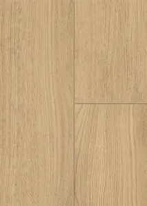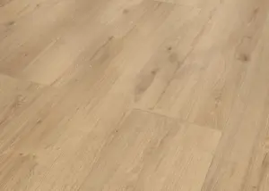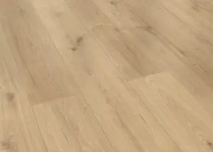 Der Laminatboden "Classen Sky.Wood Eiche hell sand 4019" überzeugt durch seine natürliche Holzoptik im Landhausdielen-Format. Die harmonische Farbgebung in heller Sand-Eiche sorgt für ein freundliches und zeitloses Ambiente. Dank der synchronen Oberflächenstruktur fühlt sich das Laminat angenehm authentisch an.