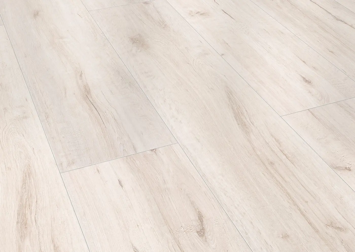 Der Laminatboden Classen Sky.WoodXL Eiche Amundsen weiß XL begeistert mit seiner authentischen Holzoptik und verleiht Wohnräumen eine zeitlos elegante Landhausdielen-Atmosphäre. Das matte Oberflächenfinish sorgt für eine natürliche Ausstrahlung und ein angenehmes Laufgefühl.