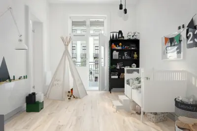 Egal ob im Wohnzimmer, Schlafzimmer, Kinderzimmer, Homeoffice, in der Küche oder im Badezimmer – dieser Laminatboden setzt überall stilvolle Akzente.