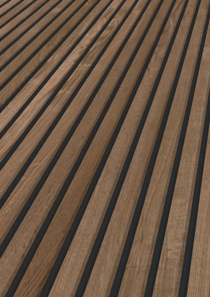 Mit den Paneelen der Linear Edition von ter Hürne gestalten Sie Wände und Decken modern und ausdrucksstark. Das Dekor Eiche dunkelbraun/mattschwarz verbindet eine natürliche Eichenanmutung mit einer markanten, mattschwarzen Akzentwirkung – ideal für klare Linien, ruhige Flächen und zeitgemäße Raumkonzepte.