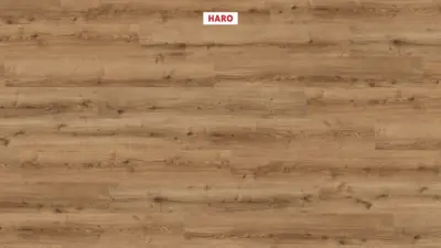 Der HARO DISANO WaveAqua Designboden überzeugt durch sein elegantes Landhausdielenformat und die authentische Holzoptik in Eiche Ontario natur. Die warme, braune Farbgebung und die lebhafte Maserung verleihen jedem Raum ein stilvolles und natürliches Ambiente.