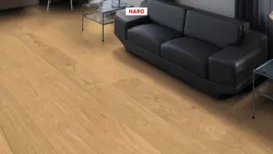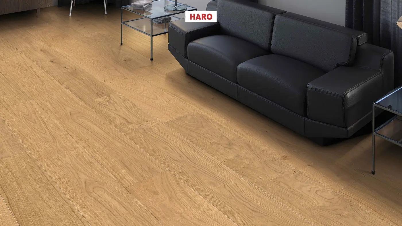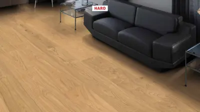 Der HARO Holz-Performanceboden Eiche Natürlich Strukturiert begeistert mit einer natürlichen Holzoptik im Landhausdielenformat. Dank der strukturierten Oberfläche wirkt jede Diele besonders authentisch. Das innovative Top Connect Klicksystem ermöglicht eine unkomplizierte und schnelle Verlegung. Integrierter Trittschallschutz sorgt für zusätzliche Ruhe im Raum und macht diesen Boden ideal für verschiedene Wohnbereiche – vom Wohnzimmer über das Schlafzimmer bis hin zu Küche, Kinderzimmer, Badezimmer, Homeoffice und gewerblich genutzte Flächen.