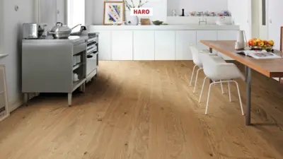 Mit dem HARO 2-Schicht Parkett der Serie 4000 Landhausdiele Maxim wählen Sie einen langlebigen, stilvollen Bodenbelag, der Ihre Räume aufwertet und für ein wohngesundes Ambiente sorgt.