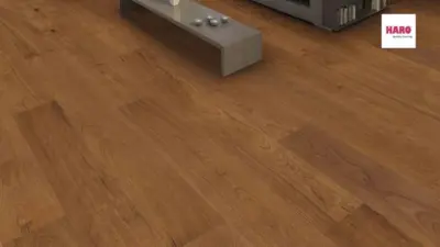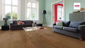 Erleben Sie einen hochwertigen Parkettboden, der Wohnräume mit natürlicher Eleganz und lebhaftem Charakter bereichert. Die Landhausdiele Plaza 240 aus der HARO Serie 4000 kombiniert ausgewählte Eiche in ansprechendem Braunton mit der markanten Sortierung „Sauvage“ und einer strukturierten Oberfläche. Das geölte Finish mit naturaDur sorgt für eine samtige Haptik und widerstandsfähige Oberfläche.