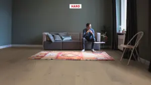 Mit der Landhausdiele Plaza 240 aus der HARO Serie 4000 entscheiden Sie sich für einen exklusiven Parkettboden, der zeitlose Eleganz und robuste Wohnlichkeit vereint. Die Dielen beeindrucken durch ihr großzügiges Format von 2200 mm Länge und 240 mm Breite – ideal für großzügige Raumgestaltungen.