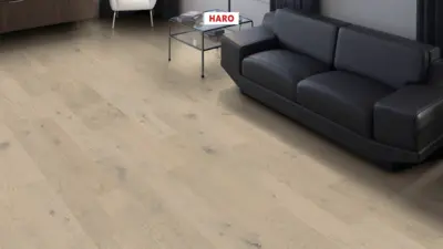 HARO Serie 4000 Landhausdiele Prestige Eiche sandgrau Sauvage strukturiert nD