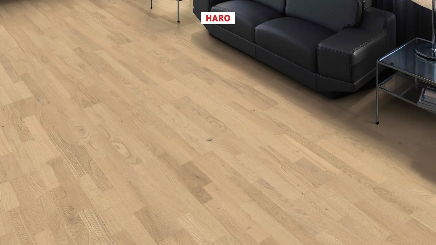 Entdecken Sie exklusiven Parkettboden aus der HARO Serie 4000. Dieser hochwertige Schiffsboden überzeugt durch seine natürliche Eichenoptik in der Farbe Beige sowie durch die elegante, strukturierte Oberfläche. Die matte Lackierung mit der bewährten permaDur-Oberflächenbehandlung sorgt für eine angenehme Haptik und langlebige Widerstandsfähigkeit.