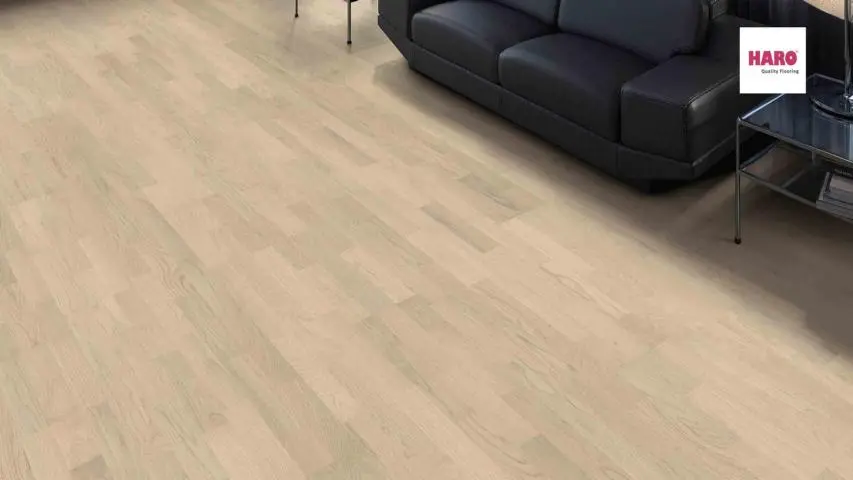Der Parkettboden aus der HARO Serie 4000 überzeugt durch seine zeitlose Schiffsboden-Optik und die elegante Farbgebung "Eiche lichtweiß Naturale strukturiert nD". Die geölte Oberfläche mit naturaDur-Veredelung betont die natürliche Holzstruktur und sorgt für eine angenehme Haptik. Dank des 3-Schicht-Aufbaus ist dieser Boden besonders formstabil. Die ruhige Sortierung unterstreicht einen harmonischen Gesamteindruck.