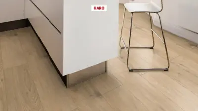 Erleben Sie hochwertigen Laminatboden im ansprechenden Landhausdielenformat mit der HARO Tritty 200 AQUA Landhausdiele 4V in der Ausführung Eiche Sicilia puro. Das dezente Holzdekor in hellem Braun sorgt für ein ruhiges und naturnahes Erscheinungsbild. Die vierseitige Fuge betont die klassische Dielenoptik und verleiht jedem Raum eine zeitlose Ausstrahlung.