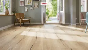 Laminatboden HARO Tritty 90 Landhausdiele 4V Silent Pro Eiche italica creme
