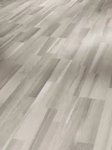 Der Boden hat eine Helligkeit, die Räume optisch vergrößern kann, und eine Materialstärke von 7 mm. Er überzeugt durch eine robuste Oberfläche sowie einen Trittschallschutz von etwa 14 dB. Das Dekor in Akazie grau mit seidenmatter Struktur wirkt authentisch und zeitgemäß.
