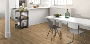Mit einer Stärke von 8 mm und einer mittleren Helligkeit verbindet dieser Boden strapazierfähige Qualität mit attraktivem Design. Geeignet für Warmwasser-Fußbodenheizungen bis max. 27°C Oberflächentemperatur sorgt der Boden zudem für angenehmen Wohnkomfort. Der integrierte Trittschallschutz reduziert den Geräuschpegel effektiv um etwa 14 dB. Für den privaten Bereich bietet der Hersteller eine Garantie von 12 Jahren.