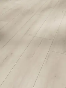 Erleben Sie mit dem hochwertigen Laminatboden Parador Trendtime 6 eine ansprechende und zeitlose Optik im Landhausstil. Das Dekor "Eiche Loft weiß Lebhafte Struktur 4V" überzeugt durch seine natürliche Wirkung und die lebendige Oberflächenstruktur. Dank der umlaufenden V-Fuge erhält dieser Boden eine edle Dielen-Optik und setzt anspruchsvolle Wohnakzente.