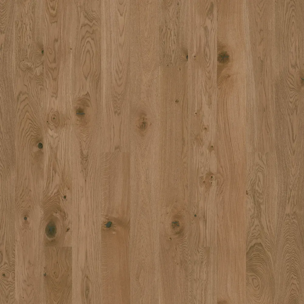 Der Parkettboden Tarkett Shade EICHE ALMOND PLANK 1 Stab verbindet zeitlose Eleganz mit moderner Funktionalität. Die Landhausdiele präsentiert sich in einem angenehmen, mittleren Braunton und besticht durch ihre rustikale Sortierung sowie eine gebürstete, matt-lackierte Oberfläche. Die Struktur hebt die natürliche Schönheit der Eiche hervor und sorgt für ein harmonisches Raumgefühl.