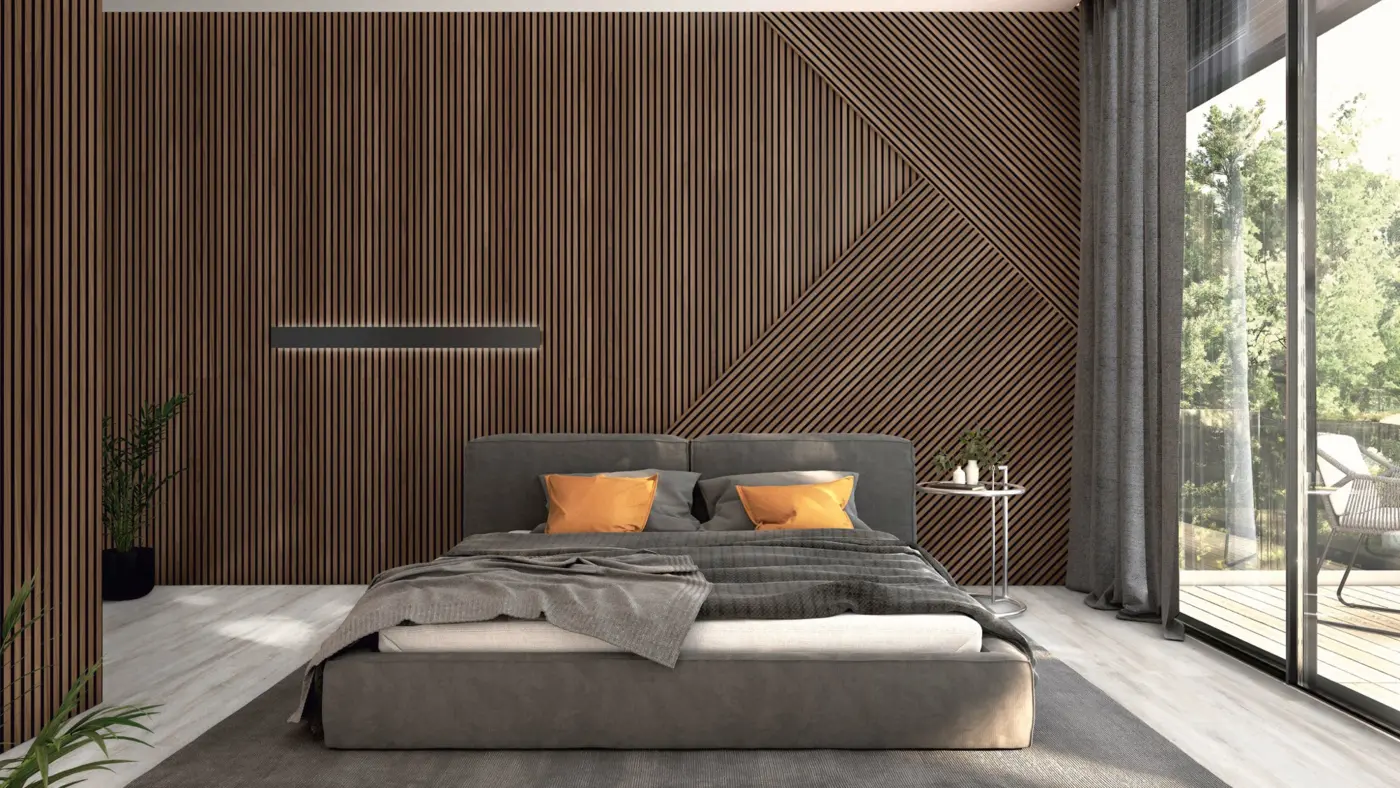 Mit den Akustikpaneelen der 3-Side Collection von ter Hürne setzen Sie Wände und Decken stilvoll in Szene und schaffen gleichzeitig eine angenehm ruhige Raumwirkung. Das Dekor Nussbaum Havel verbindet eine warme Nussbaum-Optik mit einer modernen, matt wirkenden Oberfläche und einer leicht strukturierten Anmutung – ideal für Wohnbereiche, Flure oder Arbeitsräume, in denen Design und Komfort zusammenkommen sollen.