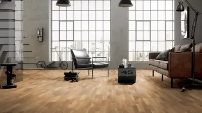 Der helle Farbton Beige und die ausdrucksstarke Sortierung betonen die Natürlichkeit des Parketts. Er bietet einen Trittschallschutz von ca. 18 dB bei empfohlener Unterlage und ist auch für den Einsatz auf Treppenstufen im privaten Bereich geeignet. Die Oberfläche ist naturgeölt (NaturOel) und unterstützt so die Pflegeleichtigkeit und Strapazierfähigkeit des Bodens. Für private Nutzung gewährt der Hersteller eine Garantie von 30 Jahren.