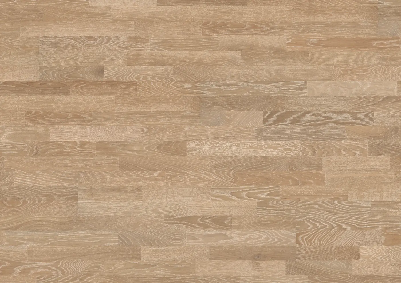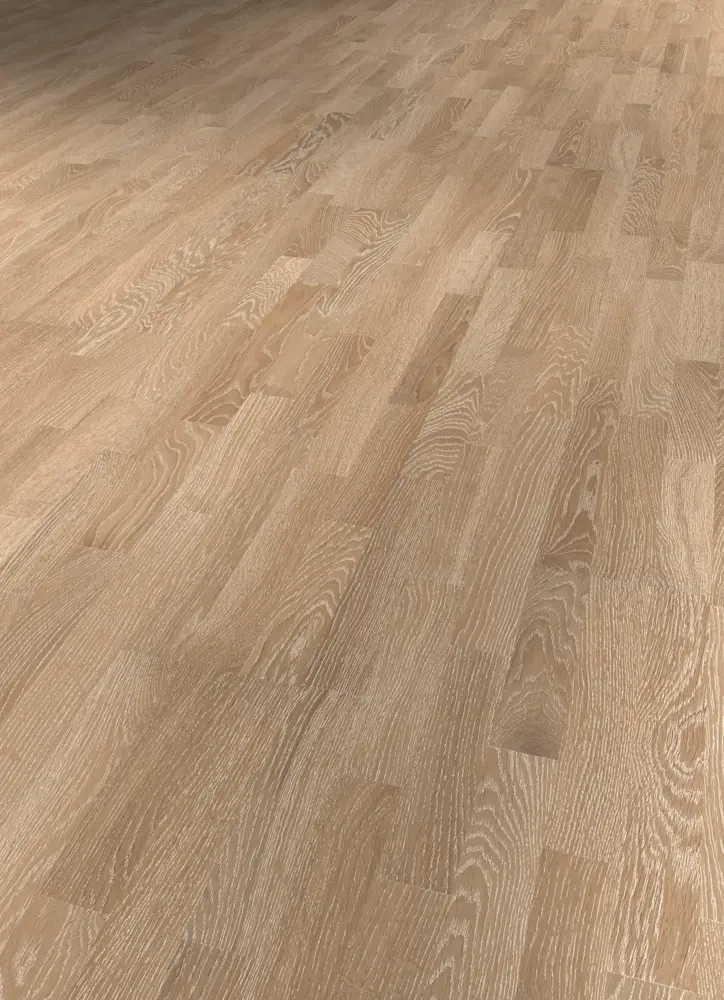 Jede Langdiele dieses Fertig-Parketts besteht aus einer dreischichtigen Konstruktion mit einer robusten Nutzschicht aus Echtholz. Die Oberfläche ist matt lackiert, gebürstet und gekälkt – dies betont die natürliche Maserung und bietet zugleich einen angenehmen Griff. Mit einer Höhe von 13 mm und einer Nutzschicht von 3,5 mm überzeugt das Parkett durch Stabilität und Langlebigkeit.Weitere Produkteigenschaften