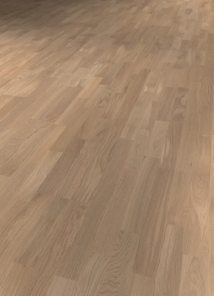 Dieser hochwertige Parkettboden aus der Satin Elements Collection von ter Hürne überzeugt durch seine natürliche Eichenoptik in einem hellen, zeitlos eleganten Lichtbeige. Die langformatigen Dielen sorgen für ein großzügiges Raumgefühl, während die matte Lackierung eine angenehme, samtige Oberflächenwirkung bietet und den natürlichen Charakter der Eiche betont. Durch die ruhige, ausgewogene Sortierung fügt sich der Boden harmonisch in viele Einrichtungsstile ein.Produktmerkmale