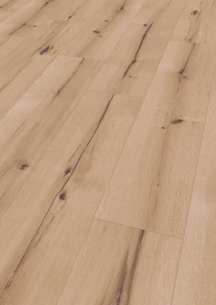 Die hohe Licht-Echtheit (Skala 6) garantiert langanhaltende Farbbrillanz. Der Boden ist antistatisch und kann auf Warmwasser-Fußbodenheizungen bis 27°C eingesetzt werden. Für ein angenehmes Laufgefühl sorgt der HDF-Träger, während der Boden bewusst ohne integrierten Trittschallschutz und Kantenimprägnierung gestaltet ist.