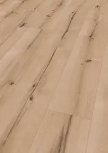 Mit einer Stärke von 8 mm und der robusten Abriebsklasse AC5 eignet sich der Boden ideal für private und gewerbliche Einsatzbereiche. Die Nutzungsklassen 23 (privat) und 32 (gewerblich) unterstreichen seine Langlebigkeit. Die umlaufende 4-seitige Fase sorgt für eine authentische Dielenoptik.