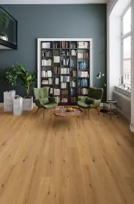 Erleben Sie den einzigartigen Charakter und die Natürlichkeit der kalifornischen Eiche mit dem Ziro Corelan Design-Korkboden KF. Dieser Korkboden zum Kleben überzeugt durch seine ansprechende Holzoptik und eine realistische Holzstruktur, die Ihrem Zuhause oder gewerblichen Räumen eine warme und wohnliche Atmosphäre verleiht.