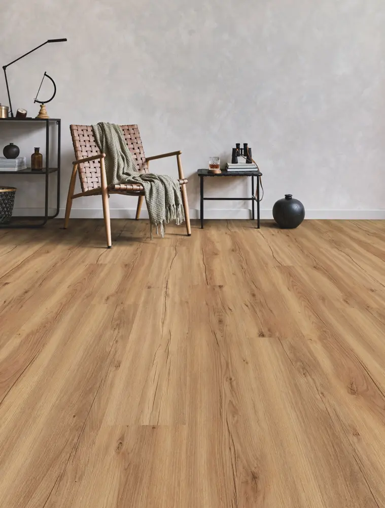 Der Ziro Vinyl-HDF, Wood & Stone Wood No.1 ist ein hochwertiger Vinylboden im Landhausdielen-Stil mit rustikaler Eiche-Holzoptik in hellem, braunem Farbton. Die Standard-Dielen im Format 1235 x 230 mm schaffen ein natürliches, wohnliches Gesamtbild und eignen sich für vielseitige Raumkonzepte im privaten sowie gewerblichen Umfeld.