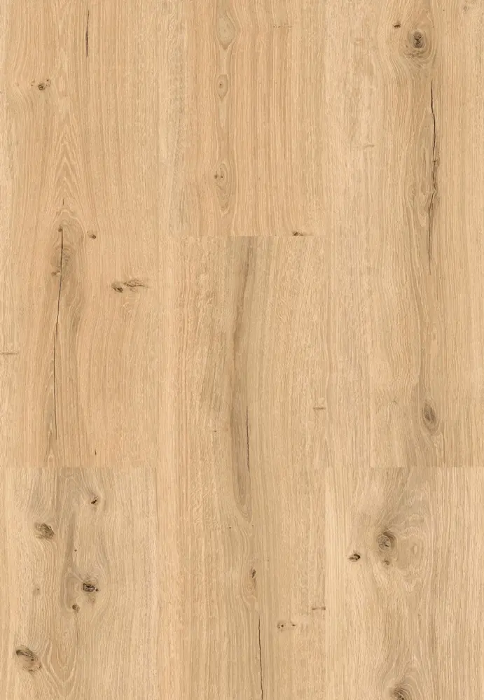 Der Ziro Vinylboden aus der Kollektion Vinyl-HDF, Wood & Stone kombiniert eine lebhafte Eiche-Holzoptik mit einem stabilen HDF-Träger. Der helle, beige Farbton des Dekors Wood No.6 passt ideal zum Stil der Landhausdiele und schafft ein freundliches, natürliches Raumgefühl – von Wohn- und Schlafzimmer bis Küche, Kinderzimmer und Homeoffice.